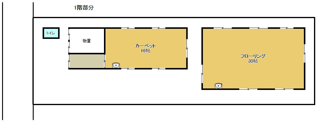 フローリング30帖、カーペット16帖他、物置
