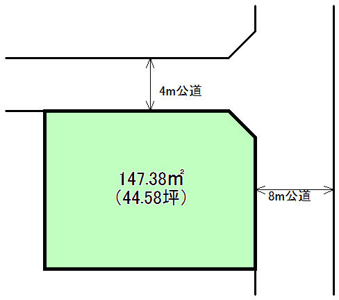接道:北東8m公道、北西4m私道に接する