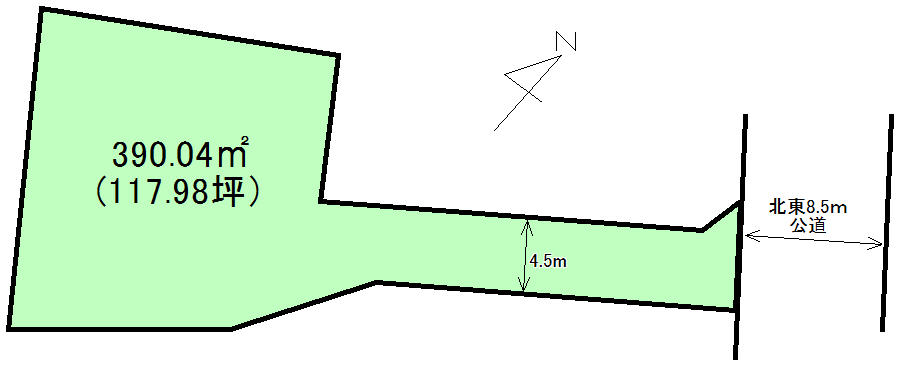 接道:北東8.5m道路に4.5m接する