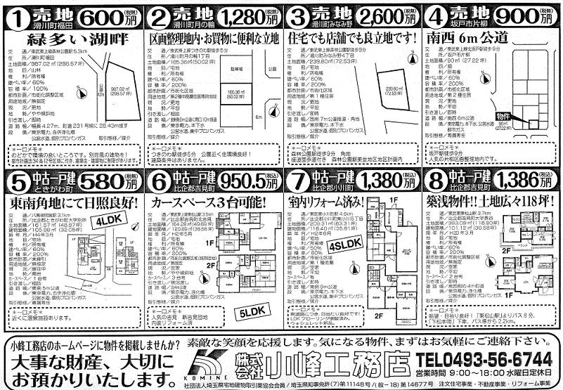 中古戸建・土地・小峰工務店・嵐山・滑川・東松山・賃貸マンション・賃貸アパート・駐車場・マンション中古